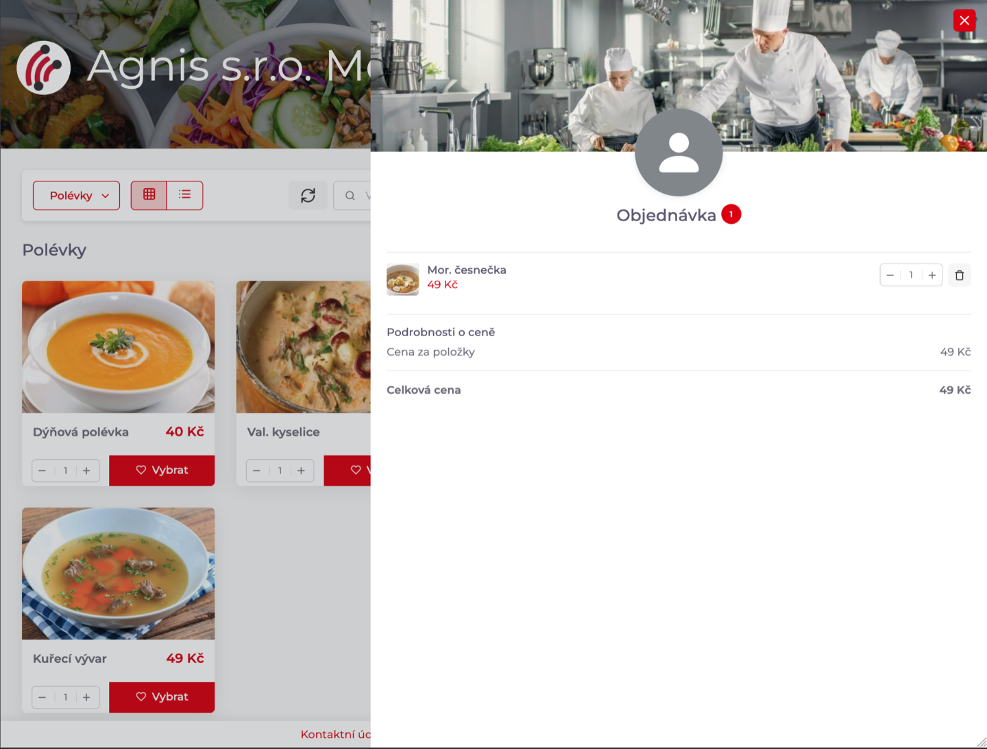 • Zákazník si jednoduše vybere z nabídky jídel přidáním do oblíbených
